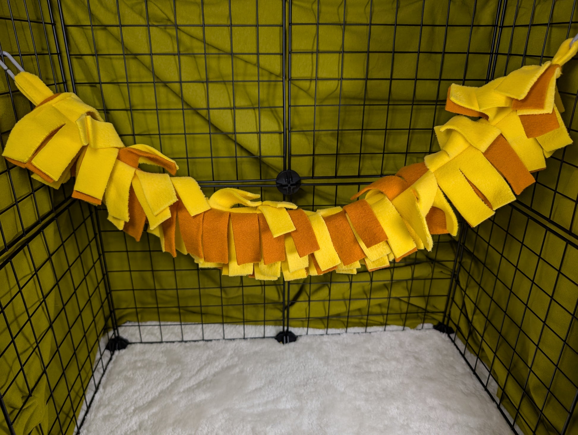 Add color, comfort, and climbing fun to your pet’s cage with our handmade Fleece Vines, designed especially for small mammals like sugar gliders! Each vine measures 6 inches wide by 26 inches long and is made from three layers of soft, high-quality fleece for durability and plushness. The vines come with sturdy hanging tabs on both ends, making them easy to install in any wire cage setup.